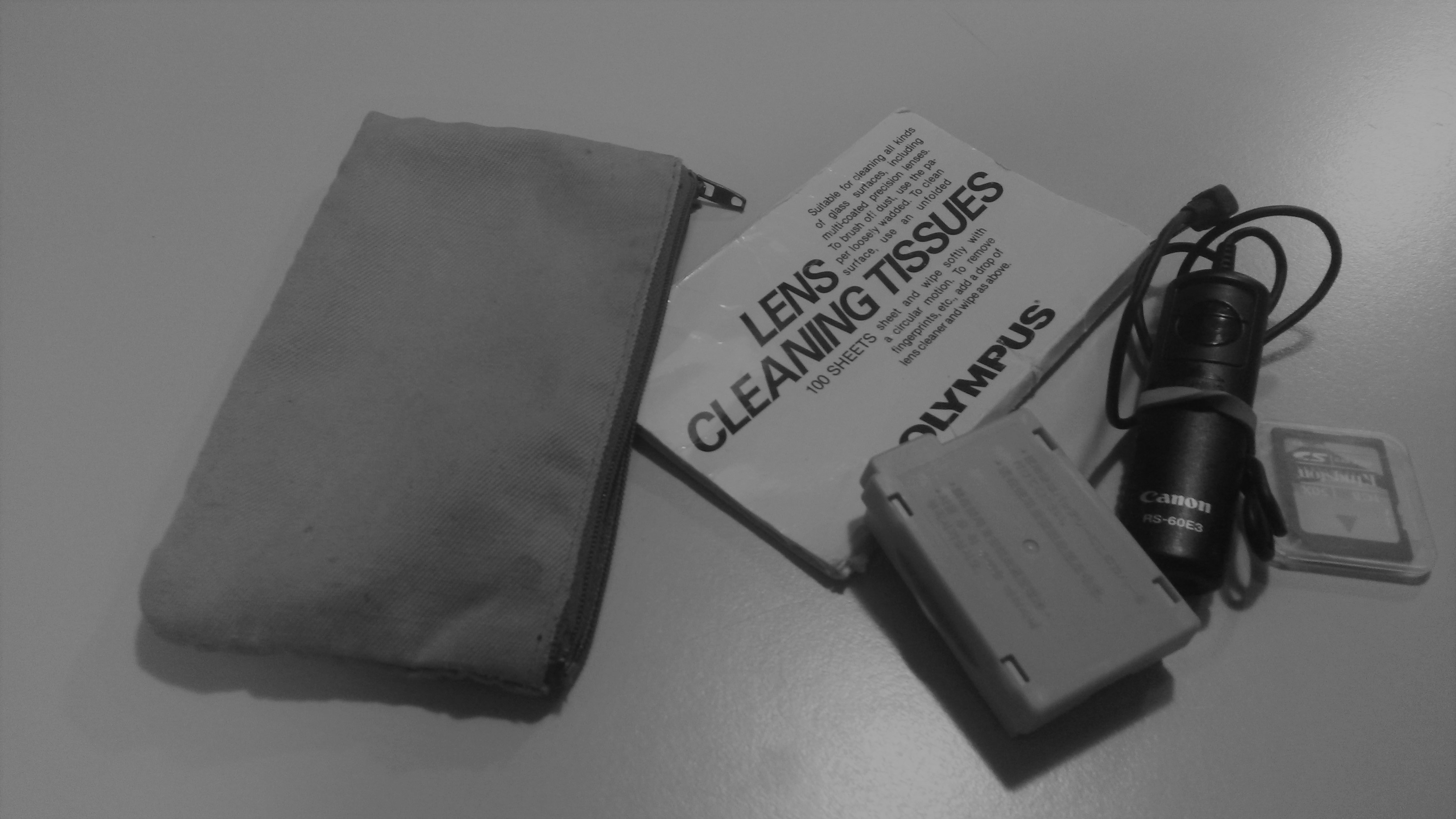 - 1 trousse beige avec matériel photographique (carte SD, batterie CANON, nettoyant optique)